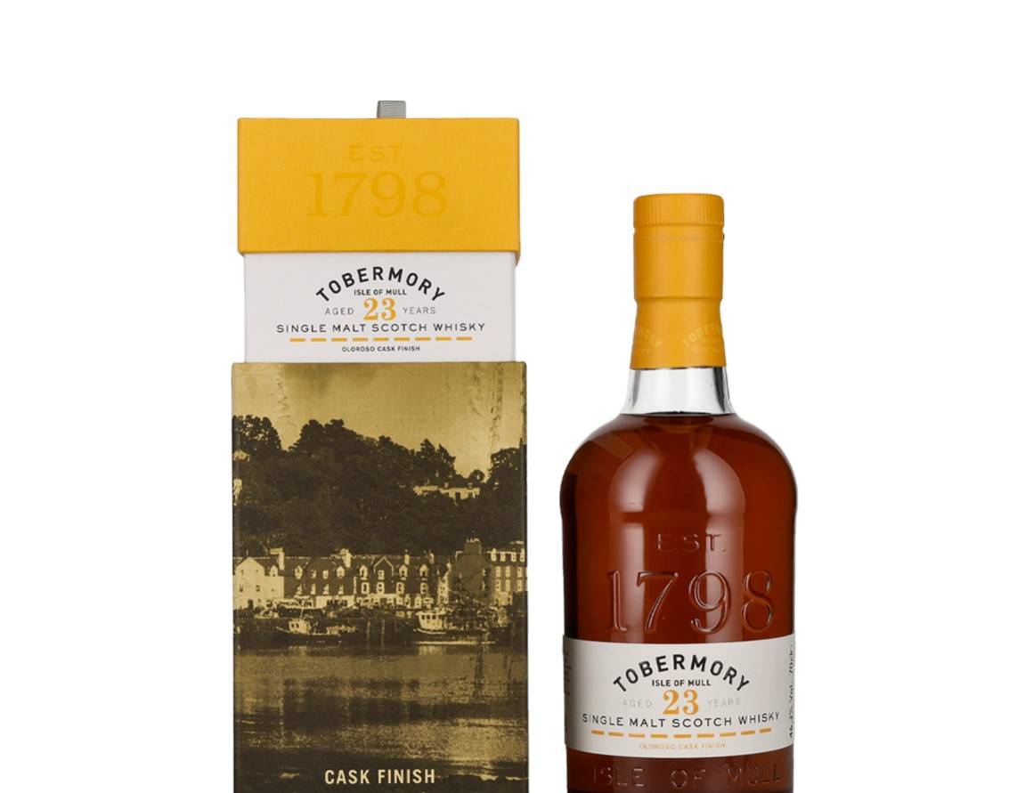 Pour ceux qui préfèrent un blended whiskyJohnnie Walker Ultimate 18 Years représente une proposition exclusive et extrêmement harmonieuse. Issu d'un assemblage minutieux de 35 whiskies de malt et de grains préalablement sélectionnés, il atteint un équilibre impeccable entre tradition et modernité.Le nez associe fruits mûrs, caramel et une légère nuance d'amande. En bouche, il est crémeux et réconfortant, avec des notes de vanille, de mandarine et une finale onctueuse de chocolat noir et de fumée délicate. Son caractère enveloppant et son esthétique élégante le rendent idéal pour offrir ou partager lors d'occasions spéciales. Sans aucun doute, un des meilleurs whiskies au monde de blended premium.Tobermory, 23 ans